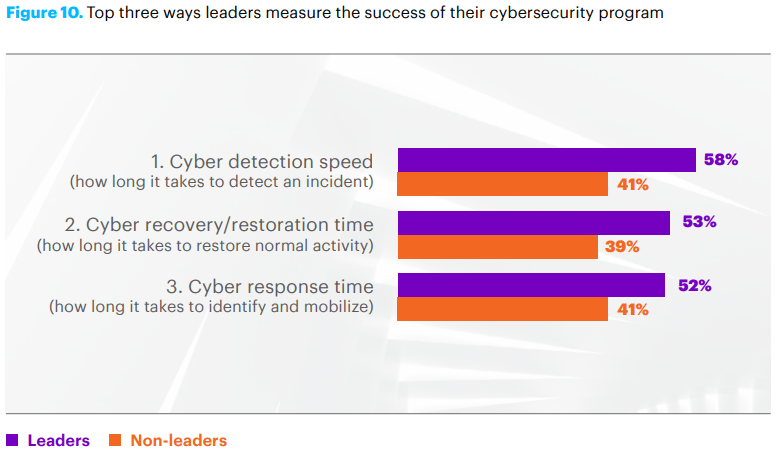 Tal y como recoge el informe Innovate for Cyberresilience de Accenture, para que un programa de ciberseguridad tenga éxito, debe invertir en velocidad operacional, es decir, priorizar en una detección y respuesta rápidas. En este caso, la mayoría de los líderes coincide en que la velocidad de detección (58% de los encuestados), el tiempo de recuperación/restauración de la actividad normal (53%) y el tiempo de respuesta (52%) son los tres factores clave que se deben tener en cuenta para medir dicho éxito.