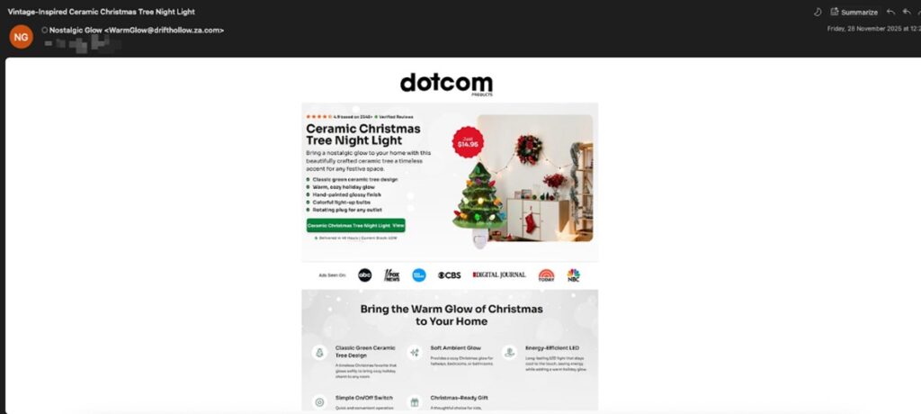 Durante las dos últimas semanas, Check Point Software ha identificado 33.502 correos de phishing con temática navideña y más de 10.000 anuncios fraudulentos diarios en redes sociales, muchos de ellos diseñados para imitar promociones festivas, supuestas rebajas de grandes superficies o avisos urgentes de entrega de paquetes.