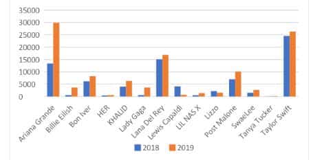 El análisis mostró que los nombres de Ariana Grande, Taylor Swift y Post Malone fueron los más utilizados como disfraz de los archivos maliciosos. De hecho, más de la mitad de los archivos maliciosos detectados los utilizaban.