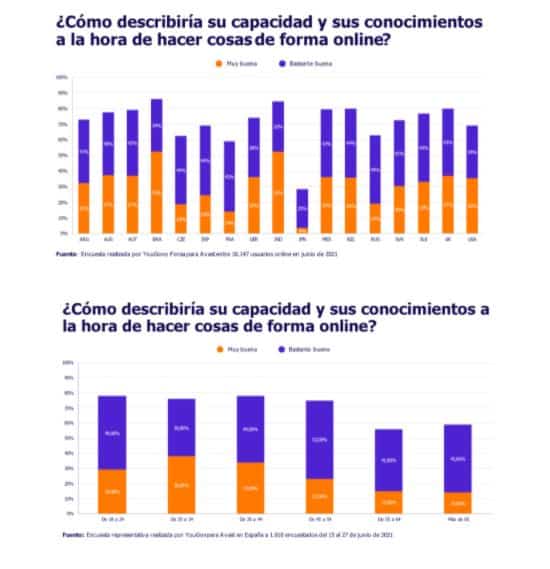 Los resultados apuntan a una correlación directa entre el tiempo que se pasa en Internet y la confianza en la red. A nivel general, el 69% de las personas se sienten seguras en Internet, pero esta confianza disminuye con cada grupo de edad y se reduce al 59% en los mayores de 65 años.