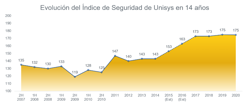 Unisys ha hecho pública la edición de 2020 de su Índice de Seguridad, un barómetro que mide desde hace 14 años la percepción de seguridad nacional, financiera, personal y online de los ciudadanos de todo el planeta. En esta edición, que se realizó entre el 16 de marzo y el 5 de abril de 2020, en pleno confinamiento debido a la pandemia producida por el COVID-19 a más de 15.000 adultos de todo el mundo, resalta una caída sin precedentes en la percepción del riesgo asociado al teletrabajo: sólo un 41% de los usuarios encuestados mostró preocupación por el riesgo de robo de información mientras teletrabaja, la cifra más baja de la historia del Índice; y sólo un 45% mostró cierta inquietud sobre los riesgos de ser estafados durante la crisis sanitaria. La preocupación general sobre la seguridad en Internet cayó 8 puntos hasta convertirse en el área de menor preocupación en el estudio.