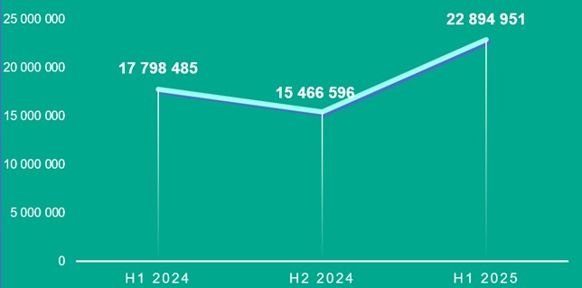 Por último, los troyanos bancarios móviles han experimentado un crecimiento explosivo: su número casi se cuadruplicó respecto al primer semestre de 2024 y fue más del doble frente al segundo semestre de ese mismo año. Suplantando aplicaciones legítimas de banca o servicios financieros, su objetivo principal es robar credenciales y datos sensibles de las víctimas.