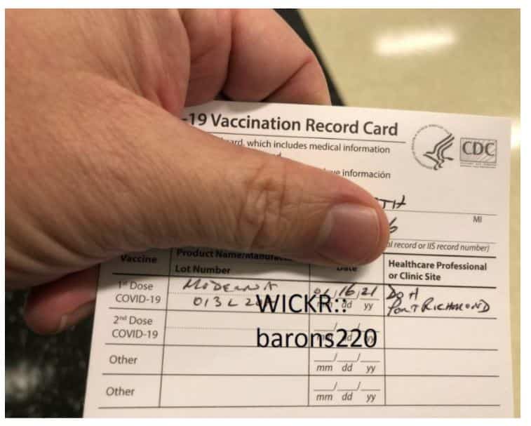 Falsa cartilla de vacunación de los «CDC- Centers for Disease control and prevention» – parte del Departamento de Salud y Servicios Humanos del Gobierno de Estados Unidos